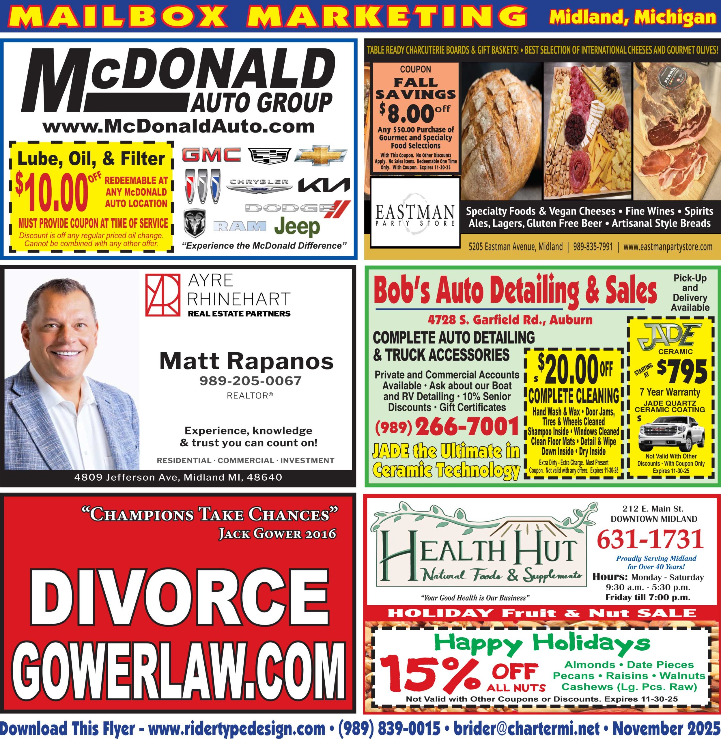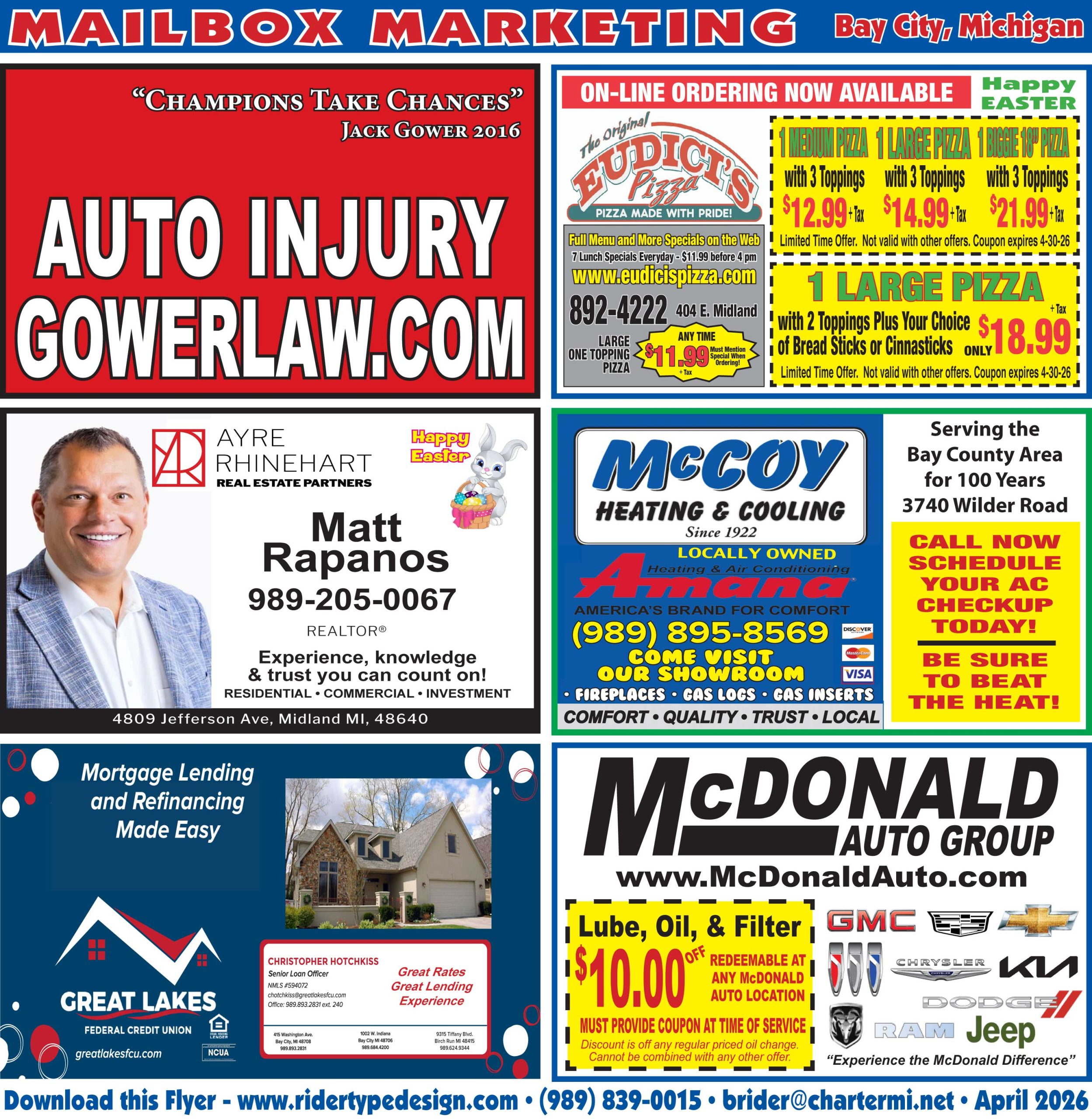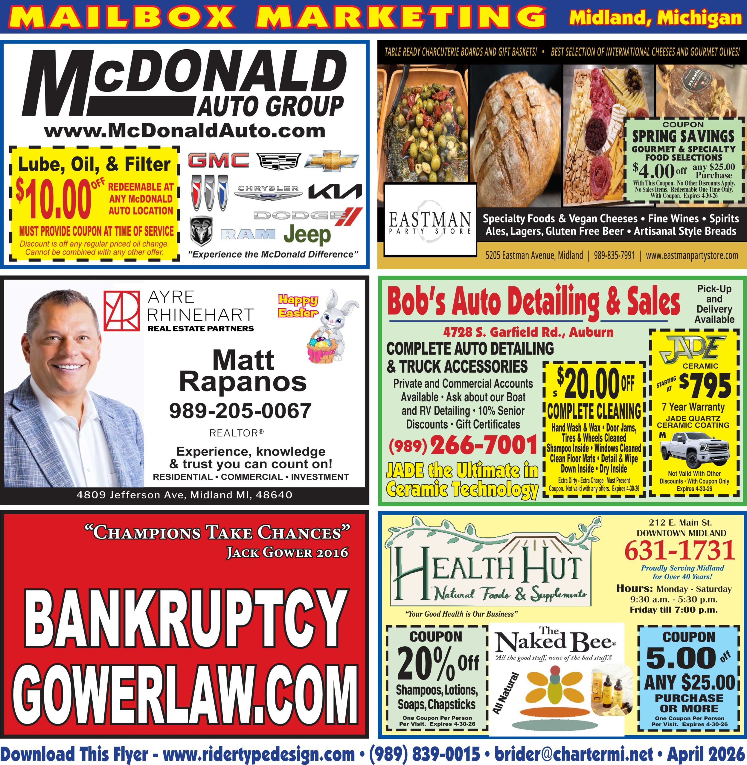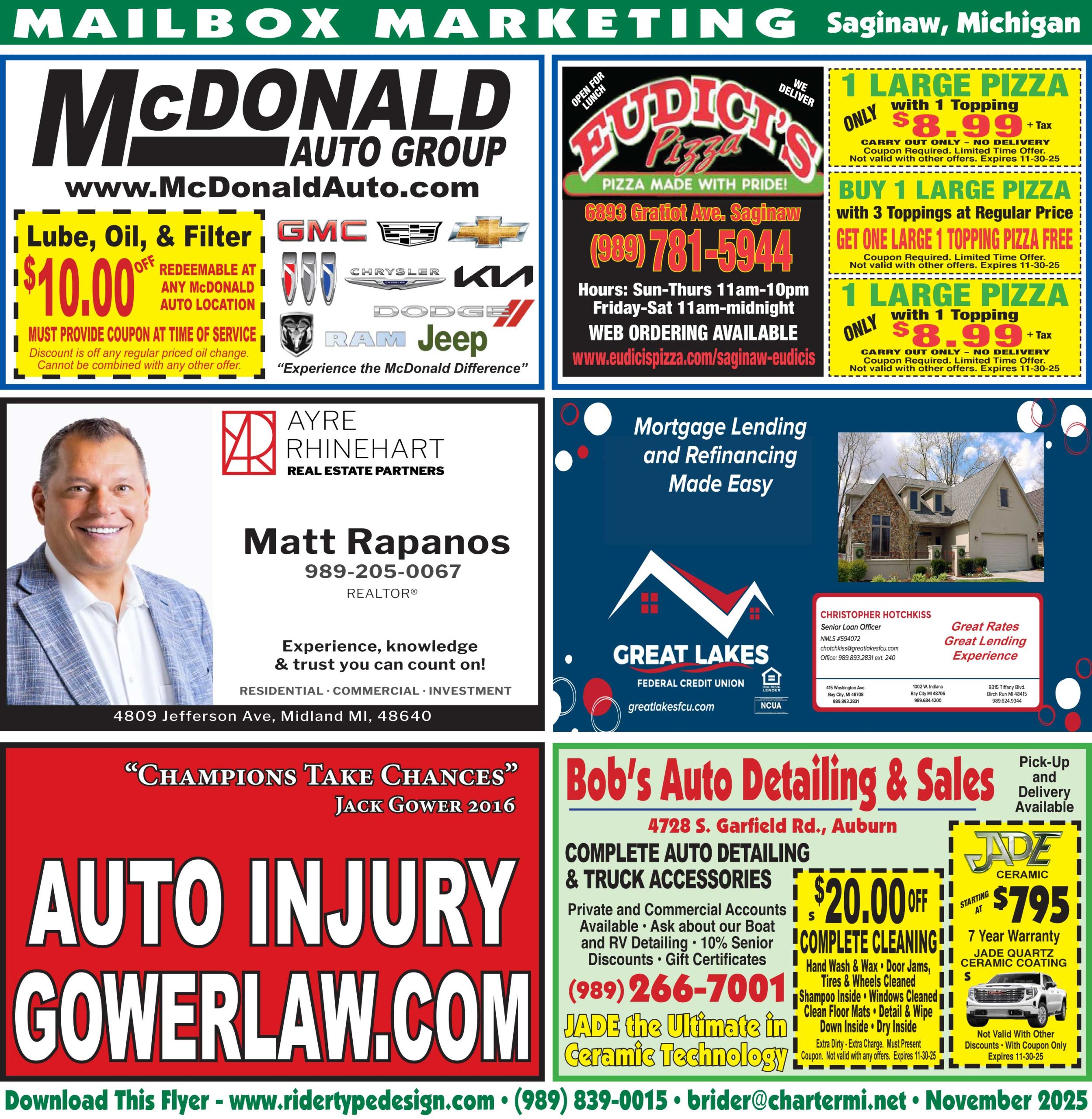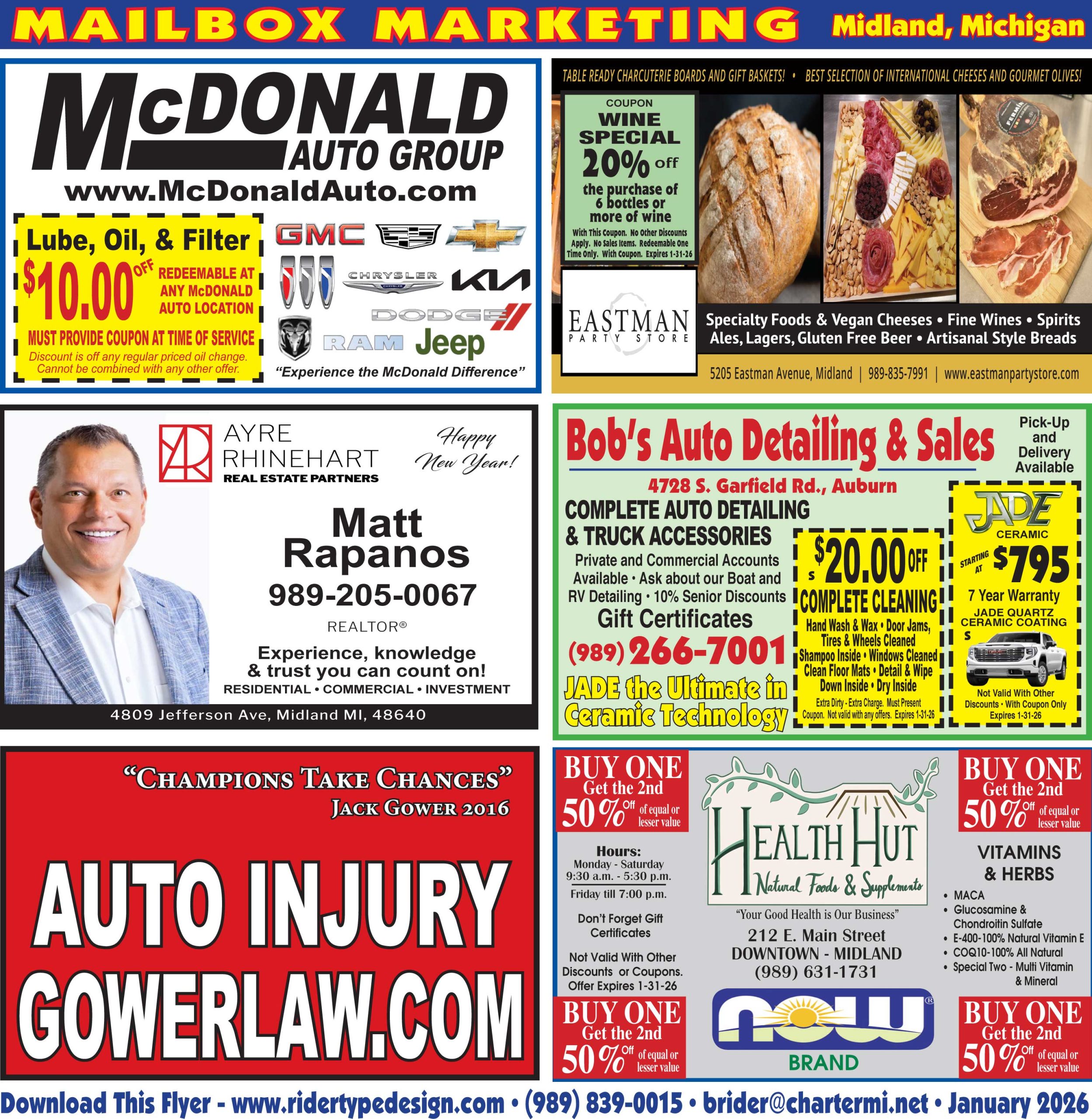 Rider Type and Design prides itself on producing and distributing a professional and popular marketing flyer throughout Midland, Saginaw and Bay Counties. Relatively inexpensive, and extremely effective, the marketing flyer that is distributed throughout this targeted area is a proven success.
